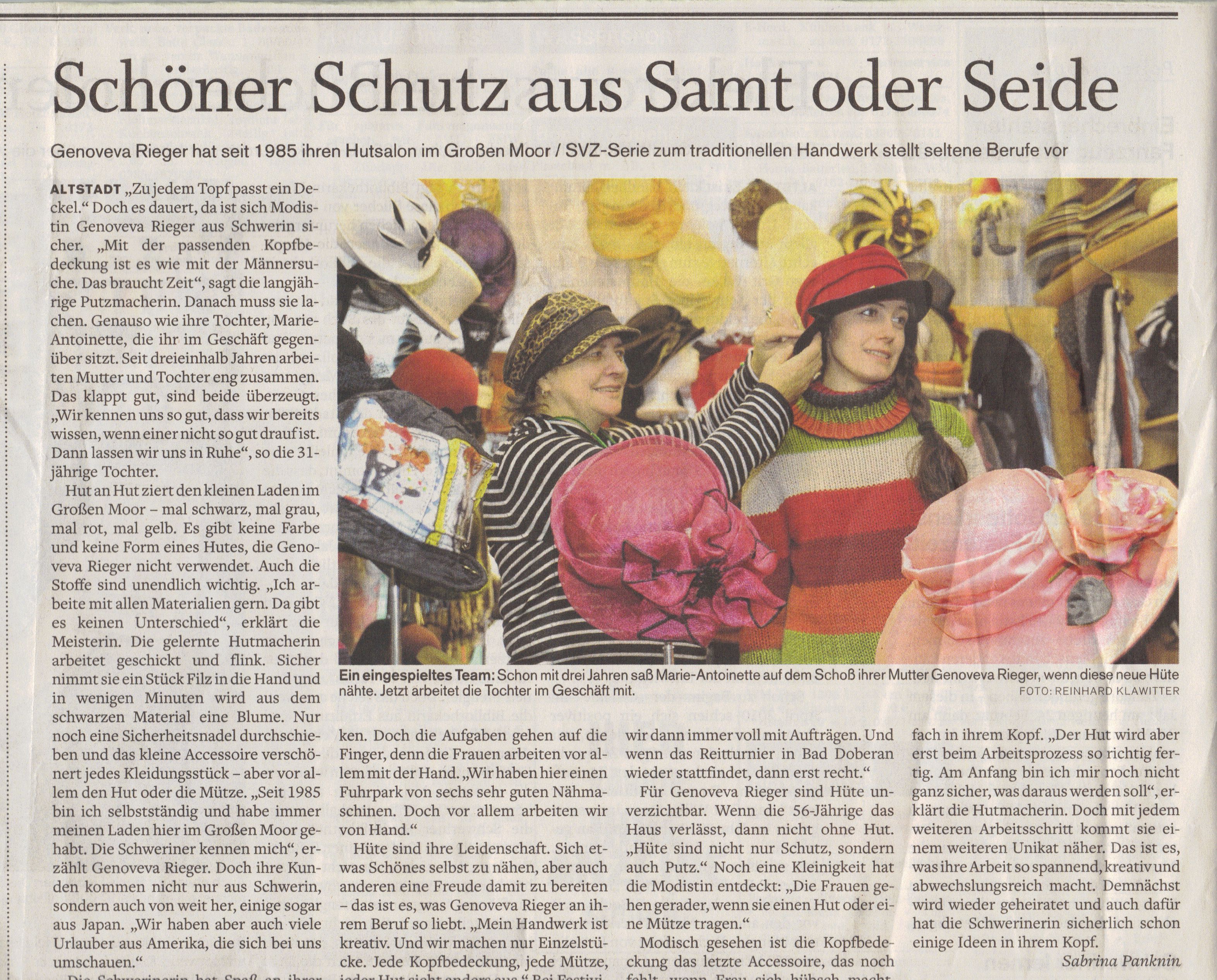 NDR - mein Nachmittag | Zu Gast in einer Hutmacherei www.ndr.de In der kleinen Handwerkerstraße Großer Moor in Schwerin haben sich viele traditionelle Handwerksbetriebe versammelt. Auch Genoveva Rieger hat hier ihren Hutladen. | Video | |