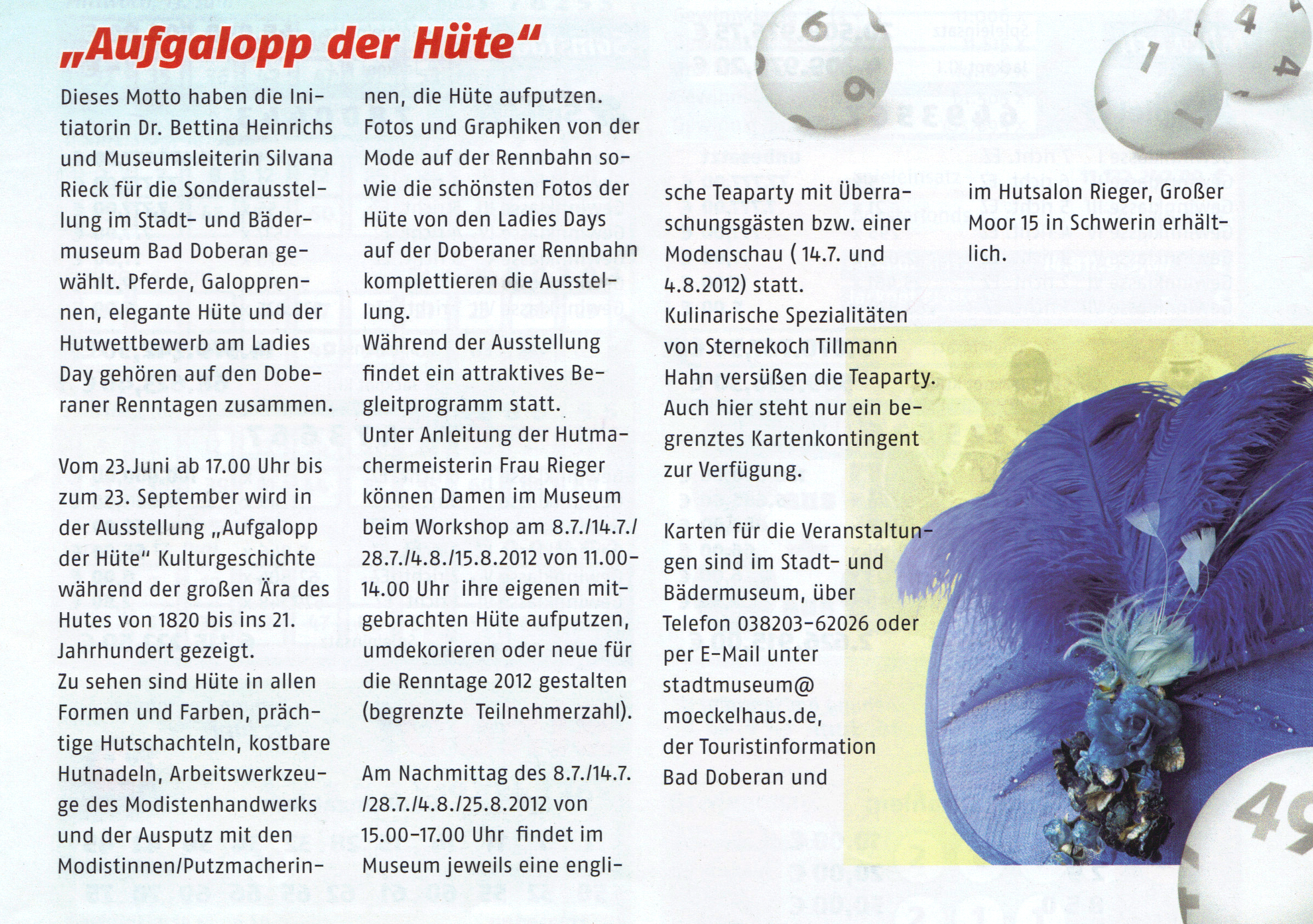 Lotto aktuell "Aufgalopp der Hüte" Zeitung NR.25 - 19.06.2012 Artikel